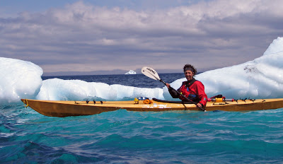 Isabelle, Alison Dyer, and I paddled from Alison's cabin in Capelin Cove (Hant's Harbour) to New Melbourne in northeast Trinity Bay. We ran into several bergy bits at New Melbourne, which gave Alison a big smile above.